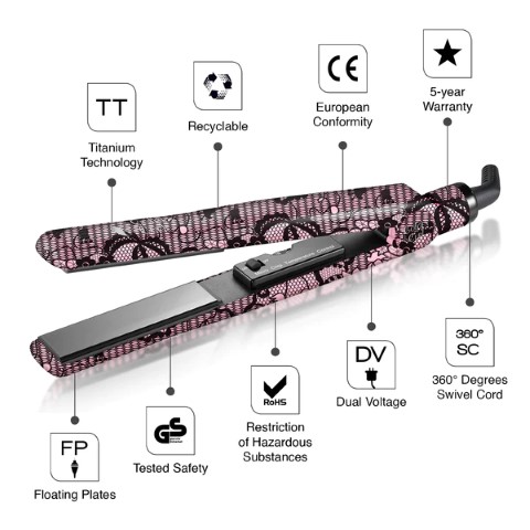 • Tourmaline-Titanium Technology: Offers long-lasting, professional results at home. The durable, tourmaline-coated titanium plates create a layer of protection from heat to prevent moisture loss and breakage.